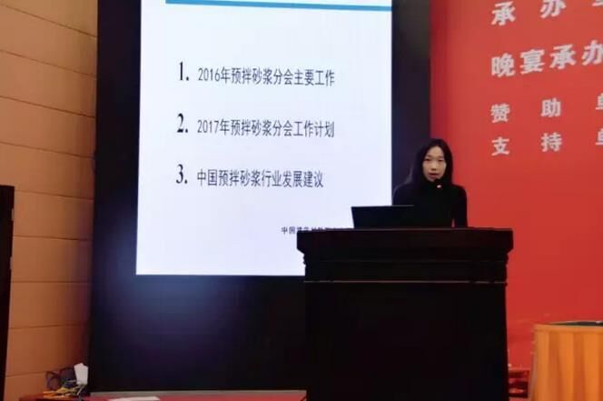 郭晞秘書(shū)長(zhǎng)首先代表預(yù)拌砂漿分會(huì)總結(jié)了2016年度的主要工作,并匯報(bào)2017年度行業(yè)重點(diǎn)工作計(jì)劃。