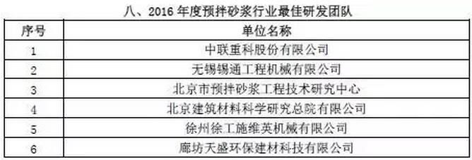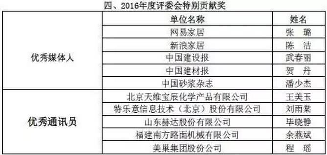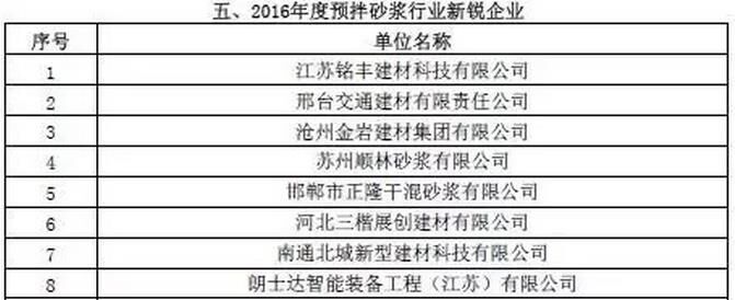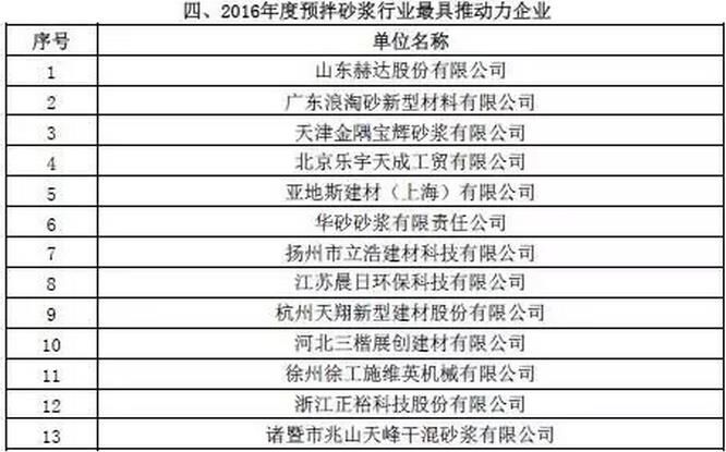 附:2016年度預(yù)拌砂漿行業(yè)表彰評(píng)比名單