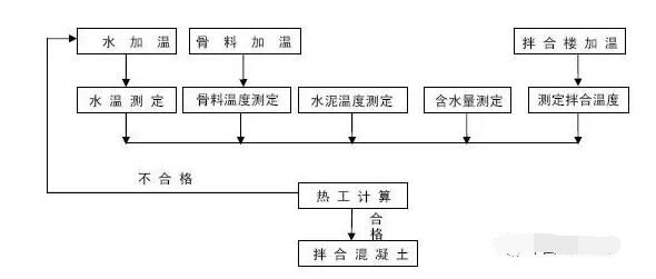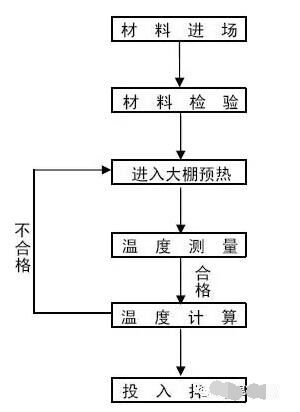 5.3根據(jù)計算結(jié)果進行判定,若計算結(jié)果表明拌和后的混凝土溫度復核驗標要求,那么可立刻進行混凝土拌和,若計算結(jié)果表明拌和后的溫度不能達到驗標要求,通過水加溫等手段提高各原材料溫度,重新進入下一道工序。