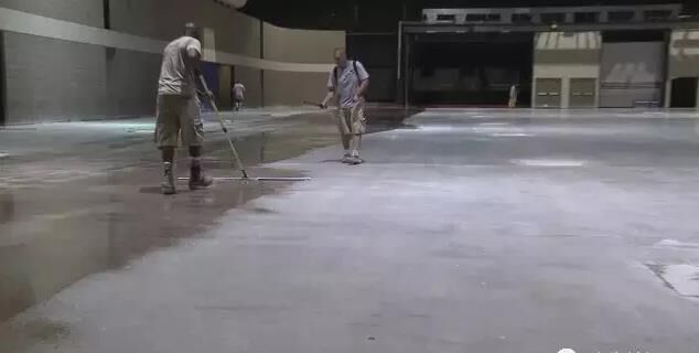 一旦混凝土表面的張合力被打開,混凝土經過20到40多分鐘來吸收硬化劑。接著,可以對同一時間段進行施工的整個區(qū)域做一個評估。如果大多數材料都已經滲透到混凝土里,那就就將剩下的材料從濕潤區(qū)域勻到干燥區(qū)域。在起粘稠區(qū)域處添加點水,把地面刷均勻,然后讓它自然干。如果材料已經全部滲透進去,表面沒有任何殘留物,那就不需要再清洗地面了。