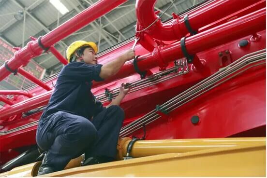 俗話說,“編筐編簍全在收口”,泵送裝配班干的就是“收口”的活兒,他們每天的工作任務(wù)就是搭建、安裝好泵車各系統(tǒng)之間的橋梁,把零散的結(jié)構(gòu)件,用一顆顆螺絲釘固定裝配成為一臺(tái)完美運(yùn)轉(zhuǎn)的機(jī)器。他們的工作,是泵車制造的最后一道重要工序,對(duì)工人的責(zé)任心、耐心以及技術(shù)熟練程度,都提出了極其嚴(yán)苛的要求。
