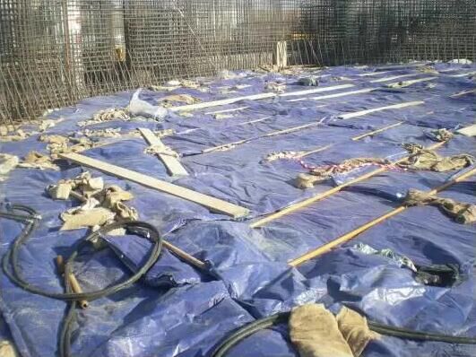頂板、梁混凝土上部保溫為在新澆筑的混凝土表面先覆蓋塑料布再覆蓋一層草墊。對(duì)于邊角等薄弱部位或迎風(fēng)面應(yīng)加蓋草墊并做好搭接。如室外日平均氣溫在0℃及0℃以下采取在澆制的混凝土表面蓋一層塑料膜,以防稻草等覆蓋物受潮,再在混凝土周?chē)w上稻草,最后在坑口上蓋一層塑料以增強(qiáng)保溫性,來(lái)保證混凝土的質(zhì)量?;炷恋娜肽囟瓤刂圃?℃以上;混凝土澆筑后的起始養(yǎng)護(hù)溫度不低于5℃,若達(dá)不到以上溫度,則要提高養(yǎng)護(hù)水溫以滿(mǎn)足要求。
