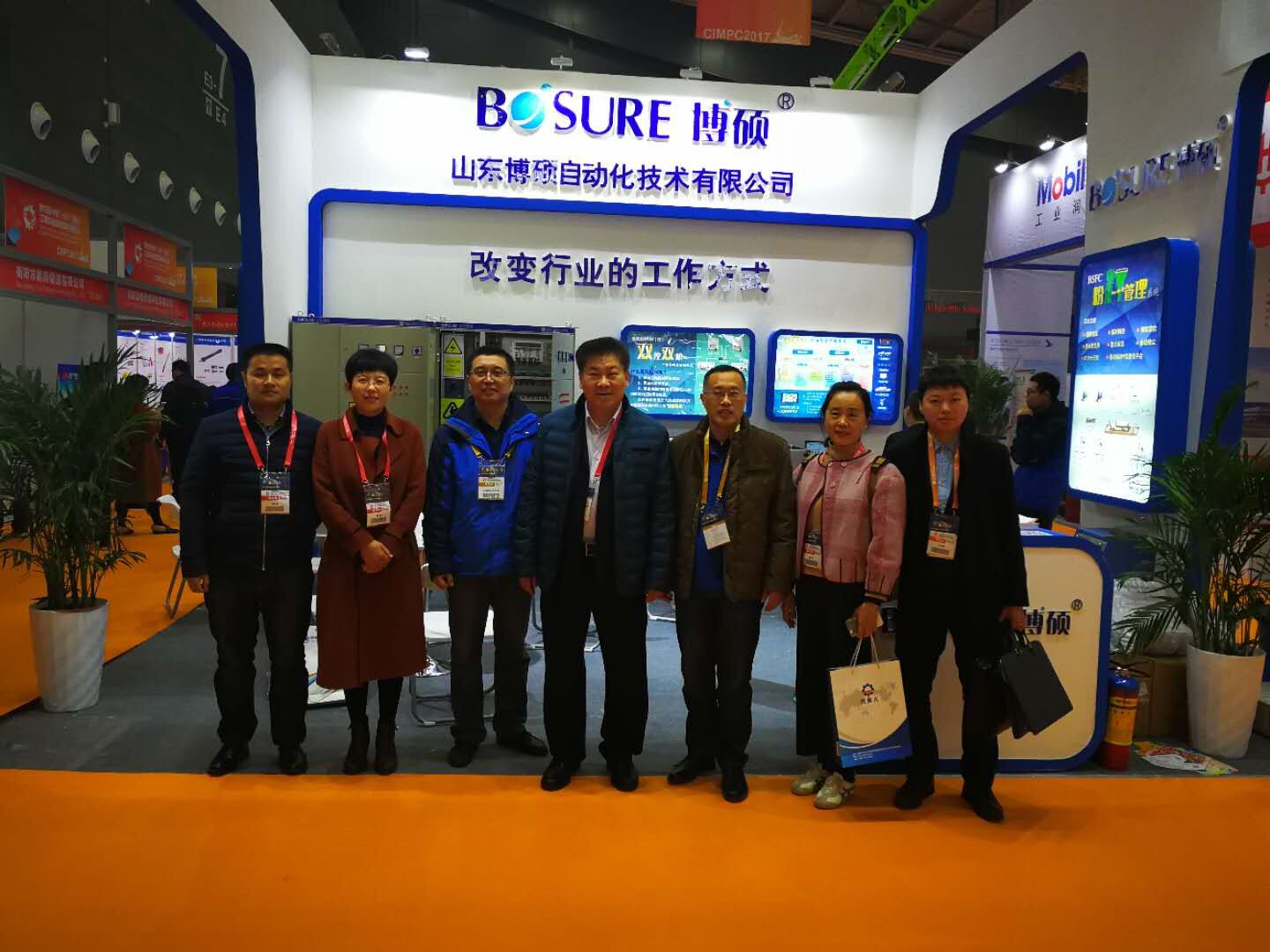 在2017長沙配博會上中國工程機械工業(yè)協(xié)會混凝土機械分會符忠軒會長及秘書長易君在砼商網(wǎng)劉娟女士的陪同下走訪參展會員單位。