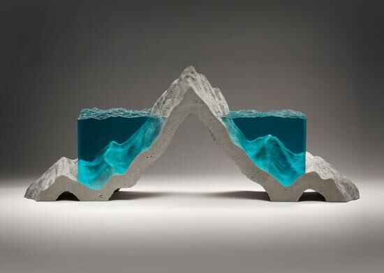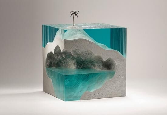 水、陸地、巖石被這位來(lái)自悉尼的雕塑家Ben Young用玻璃和混凝土打磨得惟妙惟肖,逼真同時(shí)很藝術(shù)。Ben Young出生在新西蘭,從事玻璃雕塑制作已有10多年的時(shí)間。他的作品看上去嚴(yán)絲合縫,精確細(xì)膩,盡管是混凝土這種粗糙的材料,也被打磨得如奶油般光滑。