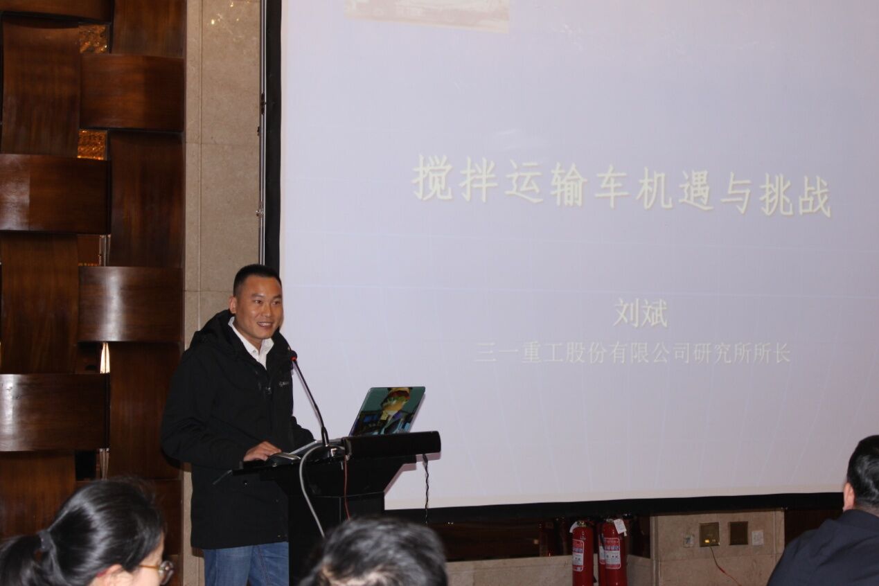 三一重工股份有限公司研究所所長劉斌先生作了《攪拌運輸車機遇與挑戰(zhàn)》的主題報告,從攪拌車面臨的五大機遇和三大挑戰(zhàn)分析,提出攪拌車的研發(fā)與生產(chǎn)要回歸本質(zhì),即運輸和質(zhì)量,保證安全運輸、環(huán)保運輸、合標(biāo)運輸、保證運輸?shù)幕炷临|(zhì)量。