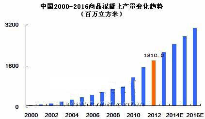 中國商品混凝土市場自2000年開始,增長就大幅度提升,2000-2012年平均增幅高達30%左右。但受全球經(jīng)濟危機的影響,中國2008年的商品混凝土市場也受到了不小的沖擊,商品混凝土的增長率大幅度下滑。不過與歐盟、美國等其他發(fā)達國家混凝土負增長率而言,中國混凝土市場表現(xiàn)的還是十分活躍的。這也反映出了中國的商品混凝土行業(yè)進入高速發(fā)展時期的特征。但中國市場目前的市場狀況十分紊亂,行業(yè)內(nèi)需要進行一番整合,清理一些市場上不規(guī)范的企業(yè),相信整合后對我國商品混凝土行業(yè)將起到較大的推動作用。中國混凝土網(wǎng)預計“十二五”期間,預拌混凝土產(chǎn)量還將有小幅增長,到2016年中國預拌混凝土產(chǎn)量將突破30億立方米,混凝土行業(yè)將邁上一個新的臺階,但總體行業(yè)回歸平穩(wěn)狀態(tài)。