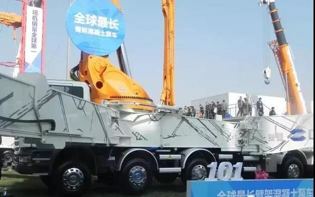 中聯(lián)重科20周年慶典展出的全球最長(zhǎng)101米泵車