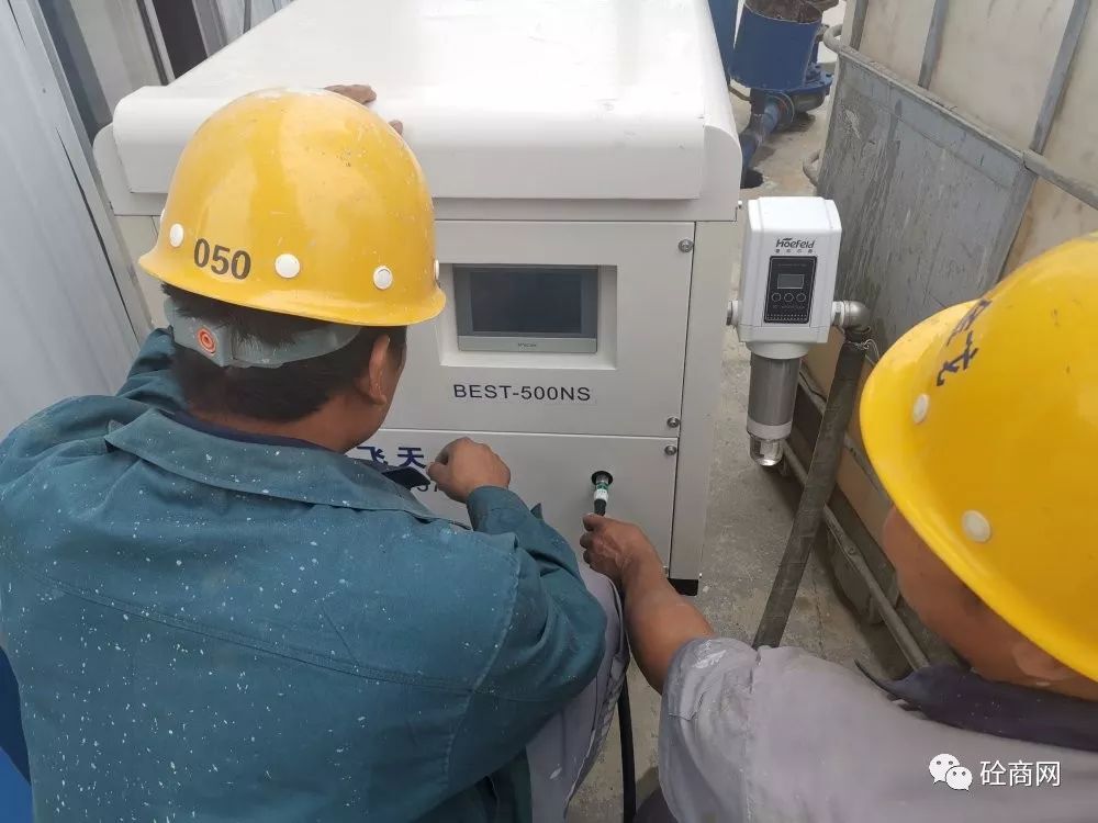到了青島某攪拌站后,其攪拌站負(fù)責(zé)人攜站長親自到現(xiàn)場觀看試機(jī)效果。