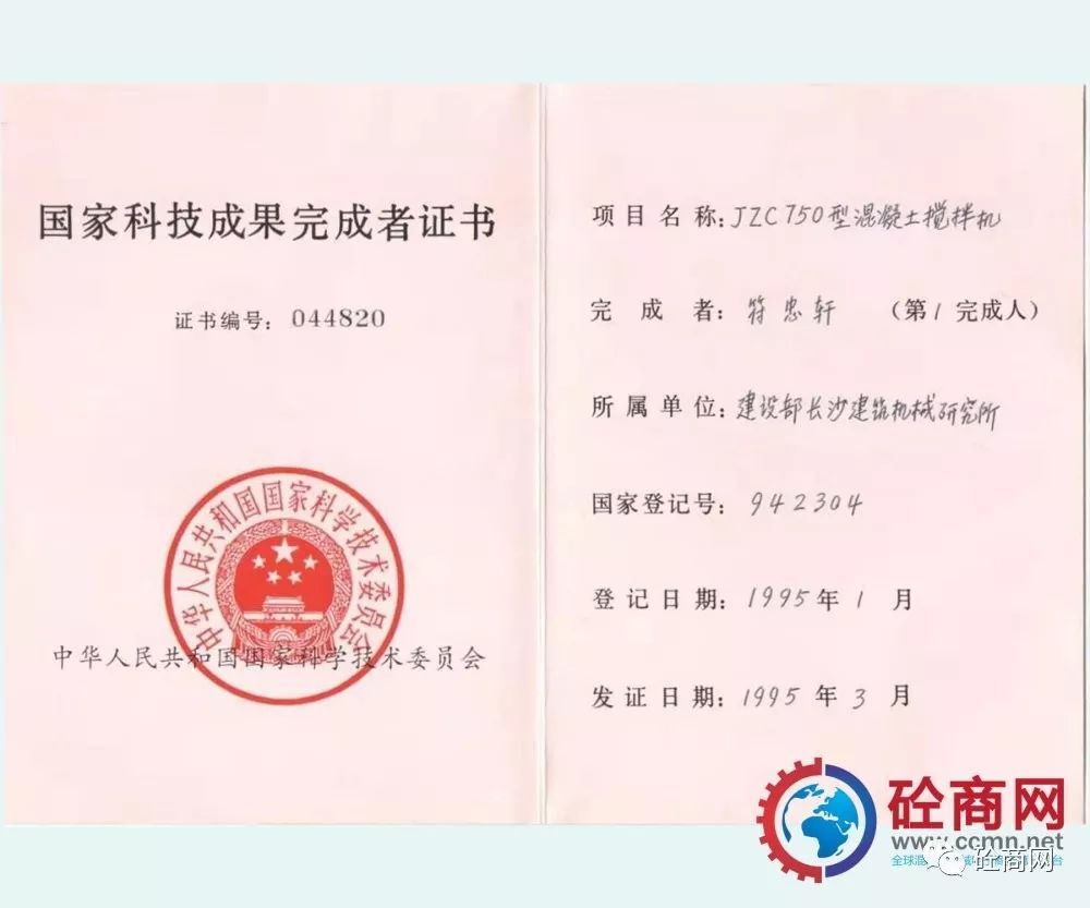 通過全行業(yè)的不懈努力,改革統(tǒng)型機型的結(jié)構(gòu)與技術(shù),新型混凝土攪拌機取得了突飛猛進的發(fā)展,并在全國推廣使用,獲得用戶廣泛的認(rèn)可與好評。長沙建機院負責(zé)的、本人作為主要參與設(shè)計者的“JZ錐形反轉(zhuǎn)出料攪拌機系列”獲建設(shè)部1987年科技進步二等獎;代表長沙建機所與方圓集團合作開發(fā)的JZC750混凝土攪拌機,獲得國家科技成果證書。