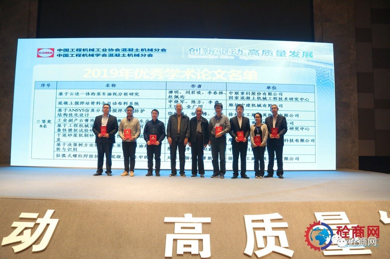 2019年的論文征集評選結(jié)果已經(jīng)揭曉,共收到參評論文26篇,其中會長單位中聯(lián)重科、國家混凝土機械技術(shù)研究中心《基于離散單元法立軸沖擊破碎機成砂率研究》等三篇論文獲得一等獎,副會長單位廊坊中建機械有限公司《混凝土攪拌站主機上蓋沾料現(xiàn)象分析與處理方法》共5篇論文獲得二等獎、中聯(lián)重科、國家混凝土機械技術(shù)研究中心《基于云邊一體的泵車油耗分析研究》等8篇論文獲得三等獎,其余10篇均獲優(yōu)秀論文獎。在此我提議:讓我們以熱烈掌聲向中聯(lián)重科、徐工施維英、廊坊中建機械有限公司三家優(yōu)秀組織單位和論文獲獎人員表示最熱烈的祝賀和最誠摯的感謝——感謝大家為中國混凝土機械行業(yè)的技術(shù)進步所做出的貢獻。