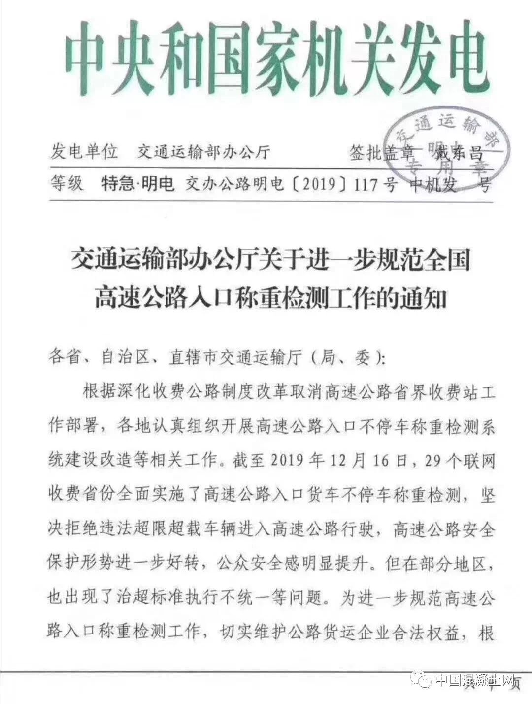 12月17日,交通運(yùn)輸部辦公廳發(fā)布特急文件《關(guān)于進(jìn)一步規(guī)范全國調(diào)整公路入口稱重檢測工作的通知》(交辦公路明電【2019】117號)(以下簡稱“《通知》”)。《通知》直指全國部分地區(qū)治超標(biāo)準(zhǔn)不統(tǒng)一的問題。為進(jìn)一步規(guī)范高速公路入口稱重檢測工作,切實維護(hù)公路貨運(yùn)企業(yè)合法權(quán)益,根據(jù)相關(guān)法律法規(guī)和規(guī)定,有關(guān)通知如下: