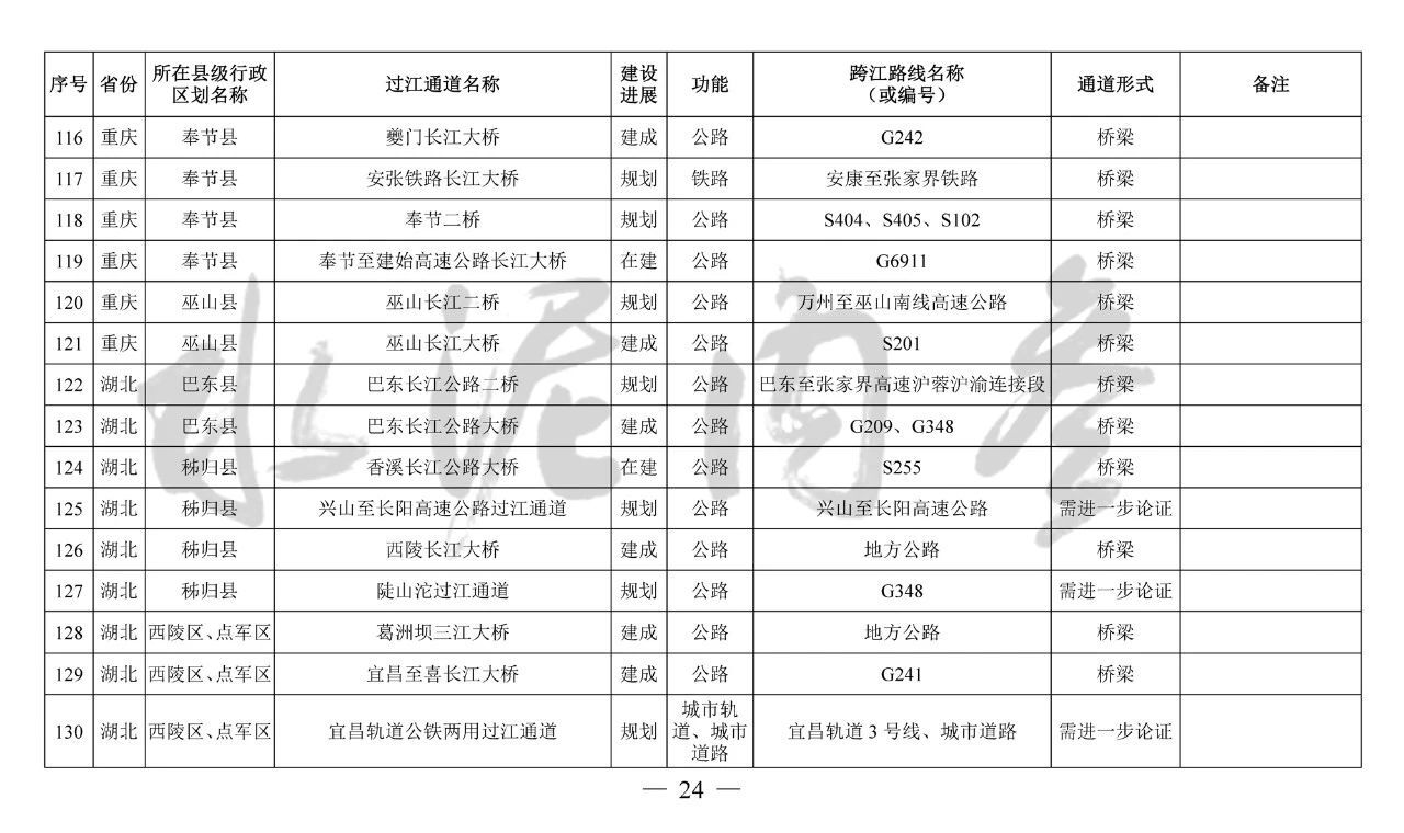 ??四、本《規(guī)劃》主要布局橫跨長江干線主要航道、具有交通功能的過江通道項目,對于連接洲島與沿岸、洲島之間的通道項目和不具備交通功能的跨江、沿江建筑物,由省級發(fā)展改革委統(tǒng)籌布局編制相關規(guī)劃報送我委銜接后組織實施。