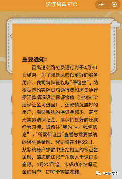 同日,浙江貨車ETC首頁發(fā)布通知,表示高速公路免費通行將于4月30日結(jié)束。