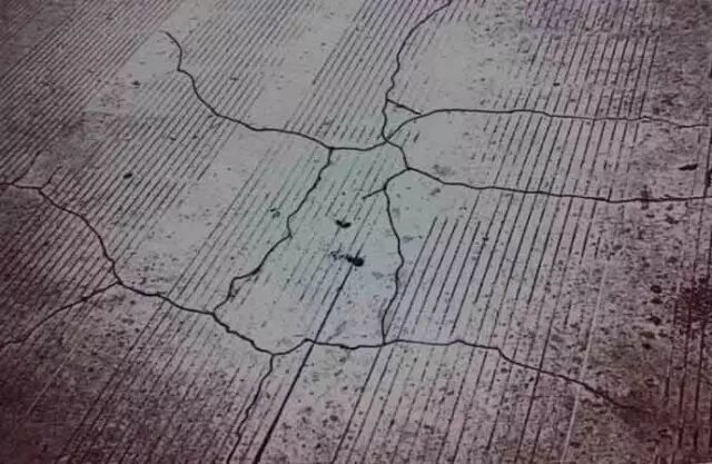 塑性收縮裂縫多在新澆筑并暴露于空氣中的結構、構件表面出現(xiàn),且長短不一,互不連貫,裂縫較,類似于干燥的泥漿面。大多在混凝土初凝后(一般在澆筑后4h左右),當外界氣溫高,風速大,氣候很干燥的情況下出現(xiàn)。