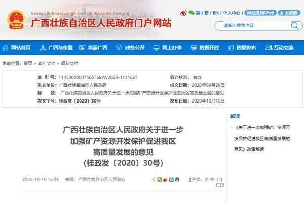 近日,廣西壯族自治區(qū)人民政府發(fā)布《關于進一步加強礦產(chǎn)資源開發(fā)保護促進我區(qū)高質(zhì)量發(fā)展的意見》,針對自治區(qū)礦業(yè)開發(fā)布局不合理、規(guī)?;讲桓?、粗放利用和生態(tài)環(huán)境保護不到位等問題提出若干建議,努力加強礦產(chǎn)資源開發(fā)保護,提高礦產(chǎn)資源有序開發(fā)和綜合利用水平。