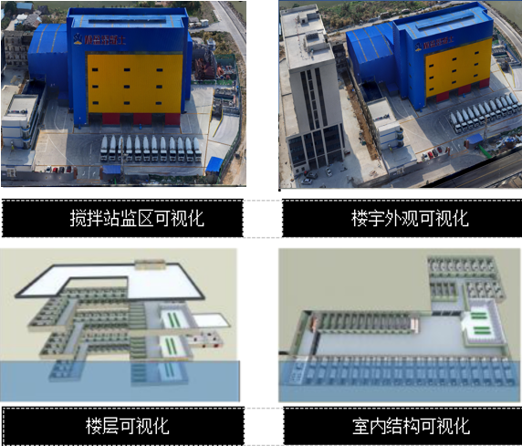 以直觀的可視化交互技術(shù)顯示攪拌站的整體分布,點(diǎn)擊每個分布圖標(biāo)后,懸浮方式顯示各個攪拌站3D建筑場景效果圖,可點(diǎn)擊場景效果圖進(jìn)入該攪拌站的3D虛擬仿真管理場景。