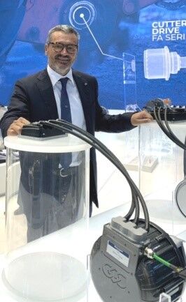 首席執(zhí)行官Fausto Carboni在慕尼黑舉行的2022Bauma展上展示用于建筑機(jī)械的新型電力驅(qū)動(dòng)裝置。