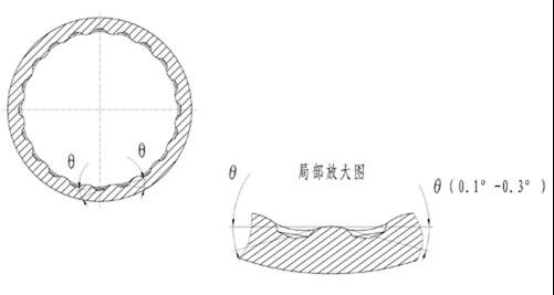 在內(nèi)孔加工過程中,油穴與內(nèi)壁交接處自然形成0.10~0.30的楔形角,不僅提高了布油效率,而且兩排油穴之間的部分形成類似滾珠的弧形面,使軸套內(nèi)壁具有了滾動(dòng)軸承的特點(diǎn)。
