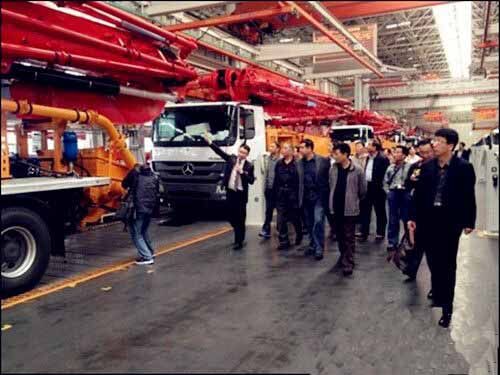 25日上午,考察團(tuán)全體成員在三一重工一號(hào)會(huì)議室召開了2014年度山東省混凝土協(xié)會(huì)會(huì)長(zhǎng)工作會(huì)議,三一重工泵送營(yíng)銷公司副總經(jīng)理王暾先生致歡迎詞,會(huì)議對(duì)2014年全年工作進(jìn)行部署、攪拌站評(píng)優(yōu)等問題展開討論。12點(diǎn)40分,考察團(tuán)參觀了三一產(chǎn)業(yè)園,一進(jìn)廠區(qū),一排排鮮紅锃亮的混凝土泵車像是巨人般列隊(duì)歡迎,亞洲最大的花園式18號(hào)廠房、一塵不染的總裝車間、豐富多彩的企業(yè)文化、振奮人心的發(fā)展前景,讓考察團(tuán)領(lǐng)導(dǎo)班子頻頻點(diǎn)贊,感嘆三一不愧為世界級(jí)工程機(jī)械制造商,充分肯定了三一重工在混凝土行業(yè)中的龍頭地位。參觀后,考察團(tuán)集體合影留念。