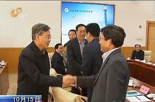 郭樹清省長(zhǎng)與張義華董事長(zhǎng)親切握手