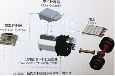 動力總成采用電驅動機械式自動變速器,采用四檔自動變速傳動,無離合器,無機械式同步器,利用電驅動主動同步代替?zhèn)鹘y的同步器摩擦被動同步,純EMT相比傳統自動變速器AMT具有高效率和低成本優(yōu)勢。