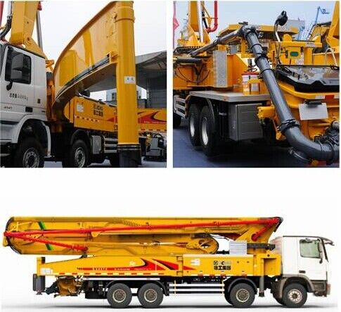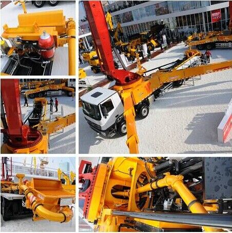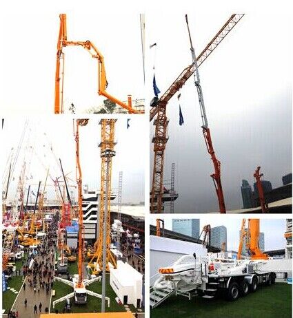 中聯重科此次參展泵車包括一臺三橋56米碳纖維臂架泵車和一臺60米7節(jié)臂橫展臂架泵車。