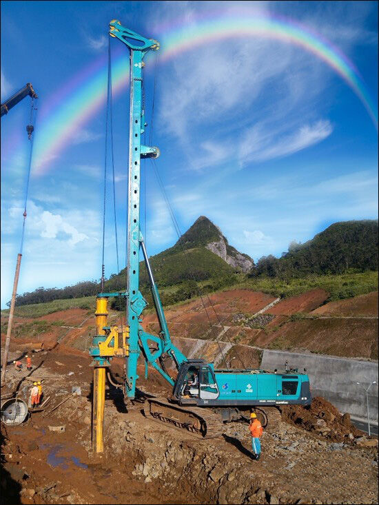 面對(duì)復(fù)雜的地質(zhì)情況及施工條件,而工程承包方施工建設(shè)多集中在水壩、水電站、公路等領(lǐng)域,旋挖樁基礎(chǔ)施工涉及不多,經(jīng)驗(yàn)有限。加之毛里求斯島國(guó)物資缺乏、施工周期緊,山河智能現(xiàn)場(chǎng)服務(wù)人員與公司總部日夜緊急聯(lián)動(dòng),及時(shí)調(diào)整作業(yè)方式,采取分段施工、埋深護(hù)筒等方法,定制成套施工解決方案,憑借公司