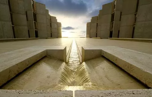 路易斯·康設(shè)計(jì)的加利福尼亞索爾克研究所,是一件大師級(jí)的作品。這里既是“具有學(xué)術(shù)氛圍的隱居之所”,也是科學(xué)研究的靈感之地。混凝土的澆筑,利用了從羅馬建筑研究汲取的技術(shù)。為了充分體現(xiàn)混凝土材料的特色,建筑師在材料設(shè)計(jì)完成后沒有再做任何的裝飾。