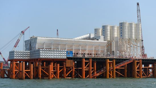 摘要: 方圓集團(tuán)2HZS180D型平臺(tái)混凝土攪拌站在平潭海峽公鐵兩用大橋施工海域巍然屹立,正式投入使用,從而成為目前抗風(fēng)等級(jí)最高、儲(chǔ)料容積最大的水上平臺(tái)混凝土攪拌站。