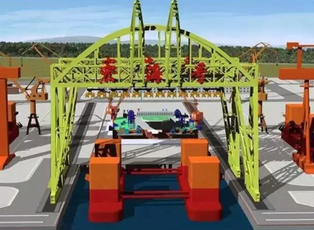 “宏?!碧?hào)22000噸起重機(jī),主要用于海上石油鉆井平臺(tái)整體的從陸地運(yùn)到海上,將以往“化整為零”的建造方式變?yōu)椤罢嬲 ?。借?2000噸起重能力的“大家伙”,把拼裝好的海洋油氣鉆井平臺(tái)從陸地上的專用拼裝胎位上提起來,直接放到海上去。設(shè)備總體高度150米,提升高度最高為65米,相當(dāng)于把重量為500節(jié)高鐵車廂或20層樓高的超重、超大型物件提升起來并行走。主體采用桁架式結(jié)構(gòu)、拱形外觀、多吊點(diǎn)雙吊梁承載,跨度124.3米,宏海號(hào)總重14800噸,相當(dāng)于兩個(gè)埃菲爾鐵塔的重量。“開下門,快遞到了啊,你的鉆井平臺(tái)~”