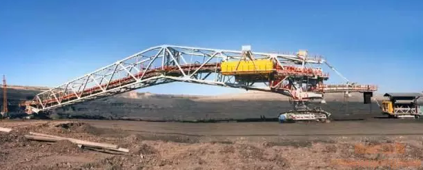 排土能力達(dá)到34000噸/小時(shí),臂長(zhǎng)超過120米。皮帶排土機(jī)為移動(dòng)式連續(xù)工作的排料設(shè)備,它們將來自可移動(dòng)梯段皮帶運(yùn)輸機(jī)的物料排卸在料堆上,借助皮帶轉(zhuǎn)載車和皮帶滑行轉(zhuǎn)載車將物料輸送到排土機(jī)。排土機(jī)有能力堆高低地、作為行駛路面的平盤,以便隨后用做新采區(qū)的卸料、堆高。除此之外,還可以使用一部皮帶排土機(jī)為可移動(dòng)梯段皮帶運(yùn)輸機(jī)堆起一個(gè)高平面。說白了,它就是一個(gè)堆土的設(shè)備嘍~