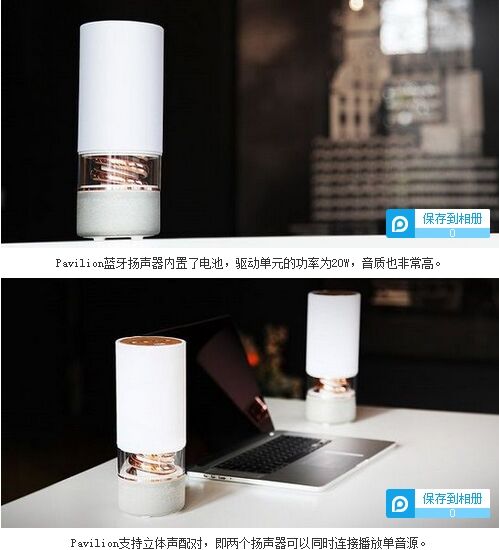 牙3.0和aptX編碼,能夠帶來CD般的音質(zhì)表現(xiàn)。除了單獨使用之外,你也可以用兩個Pavilion組成立體聲來播放同一個音源。