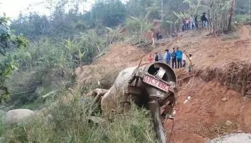 白石人劉某駕駛掛著桂K Y1093號(hào)牌的混凝土攪拌車,拉一車混凝土前往白雞村卸完混凝土后其駕車沿省道S370從白雞方向返回, 當(dāng)車輛行經(jīng)白雞村干河一下坡急轉(zhuǎn)彎路段時(shí)懷疑閃避2名學(xué)生,車輛失控翻下數(shù)十米深的溪澗中,當(dāng)?shù)匦l(wèi)生院、公安民警、消防接報(bào)先后趕到現(xiàn)場(chǎng)處置開(kāi)展救援。