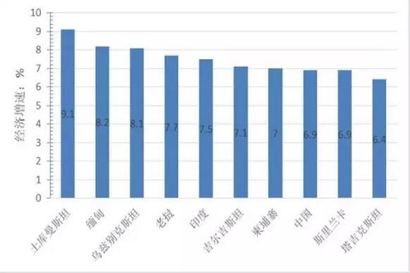 圖3 “一帶一路”地區(qū)經(jīng)濟(jì)增速前10名的國(guó)家