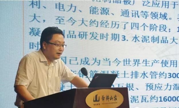 ▼ 中國混凝土與水泥制品工業(yè)協(xié)會(huì)排水管專家褚建中做“綜合管廊及海綿城市的預(yù)制混凝土構(gòu)件”的演講;