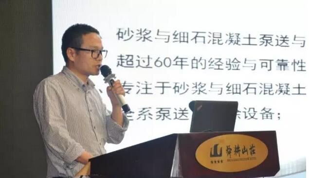 ▼ 南方路機(jī)市場總監(jiān)周煒做“未來智能化干混砂漿工廠”的演講;