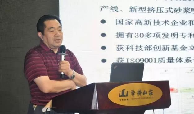 ▼ 江蘇萊斯兆遠(yuǎn)環(huán)保科技有限公司總經(jīng)理徐祥萊做“國際國內(nèi)技術(shù)領(lǐng)先的節(jié)能環(huán)保型連續(xù)式干粉砂漿生產(chǎn)線”的演講;