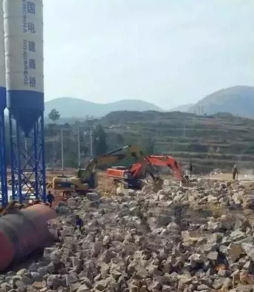 接報后,記者迅速趕往現(xiàn)場調查。在邢臺縣太子井鄉(xiāng)峰門村村西一公里附近,發(fā)現(xiàn)了該攪拌站?,F(xiàn)場已用鐵架子架起了兩個個高高的圓形槽罐,槽罐罐體上醒目標有“中國電建路橋”幾個大字。一些工人正在一旁施工,兩臺鉤機輛和塔吊也正熱火朝天地作業(yè),工地一角建設的住房也已經(jīng)蓋有一米來高。大量石子凌亂地散布在施工現(xiàn)場。根據(jù)目測估計,這家攪拌站至少占地20余畝。