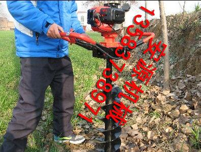 地鉆由小型通用汽油機(jī),齒輪箱及特殊設(shè)計(jì)的鉆具組成.適合在土地,凍土,冰層上打孔.廣泛用于園林,種植,植樹(shù),物探,道路建設(shè)等領(lǐng)域  2.鉆頭采用錳鋼合成更加的堅(jiān)硬。對(duì)硬土質(zhì),超硬土質(zhì),粘土,凍土等都能工作。   3.地鉆可根據(jù)樹(shù)種,選配多種規(guī)格的鉆頭,以滿足用戶需要。 4.地鉆能夠讓人們從繁重的體力勞動(dòng)解放出來(lái),廣泛應(yīng)用于植樹(shù)造林,栽種果林、籬笆、及秋季給果樹(shù)施肥等。適合各種地形,效率高,便于攜帶及野外田地作業(yè)。   5.地鉆既可以單人操作,又可雙人操作,經(jīng)濟(jì)實(shí)用。   注意事項(xiàng):1.使用正品2T(二沖程)FC級(jí)機(jī)油,嚴(yán)禁使用4T(四沖程)機(jī)油。   2.嚴(yán)禁使用純汽油。   3.嚴(yán)格按251的比例兌油. 4.新機(jī)器不可高速使用,請(qǐng)低速磨合3小時(shí)。   5.嚴(yán)禁在高速的時(shí)候突然關(guān)停發(fā)動(dòng)機(jī),否則會(huì)使下次開(kāi)機(jī)啟動(dòng)困難。   6.感覺(jué)機(jī)器震動(dòng)異常,請(qǐng)立即停機(jī)檢查,是否破損,松動(dòng),偏心。   7.嚴(yán)禁在有亂石堆的草地上使用。   8.鉆頭有嚴(yán)格的尺寸限制,嚴(yán)禁私自改裝或使用增大號(hào)鉆頭. 9.每工作一段時(shí)間清除火花塞、消音器積碳,清洗空氣濾清器,向齒輪箱加注黃油。   10.遇到問(wèn)題自己無(wú)法解決的,不要私自拆裝。   11.機(jī)器長(zhǎng)時(shí)間不用時(shí),應(yīng)該將剩余的燃油倒出,然后發(fā)動(dòng)機(jī)器將化油器內(nèi)的燃油全部燃燒干凈。   12.想讓機(jī)器運(yùn)轉(zhuǎn)更穩(wěn)定,壽命更長(zhǎng)請(qǐng)經(jīng)常保養(yǎng)。   安全事項(xiàng):   A.人身安全:嚴(yán)禁在室內(nèi)添加汽油,嚴(yán)防火災(zāi);機(jī)器運(yùn)行時(shí),嚴(yán)禁手腳靠近鉆頭;清理或檢查機(jī)器時(shí)必須停機(jī)。   B.機(jī)器安全:地鉆起動(dòng)前必須清理草坪上的雜物,確保機(jī)器安全運(yùn)轉(zhuǎn)。