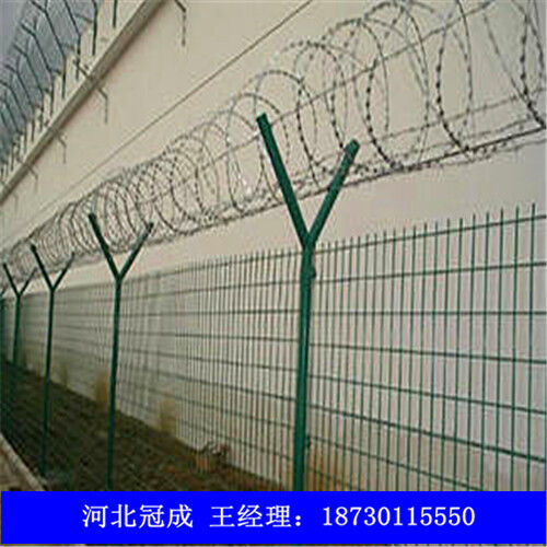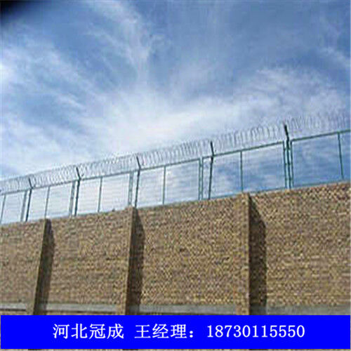 監(jiān)獄圍欄網(wǎng)可平地安裝,也可在圍墻上二次安裝,有效防止攀逃。直刺式刺網(wǎng)隔離帶,是用柱體和普通刺繩橫、縱、斜向交叉綁定成刺網(wǎng)隔離帶。主要用于特殊地帶、軍事基地圈護、溝壕圈護,安裝簡易,經(jīng)濟耐用?! ?
