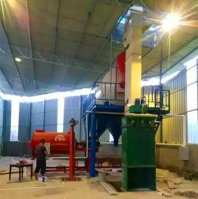我公司生產(chǎn)的這套無機(jī)保溫砂漿攪拌機(jī)主要由斗式提升機(jī)、脈沖除塵器(選配)、滾筒式攪拌機(jī)、鋼架平臺、成品倉、體積打包機(jī)(選配)、電氣控制系統(tǒng)等組成,具備以下顯著優(yōu)勢: