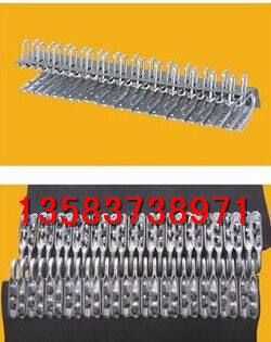 雙排扣結(jié)構(gòu):對輸送帶寬度的適應(yīng)性強(qiáng),接頭成槽性好;訂扣輕便:使用拉桿式訂扣機(jī)裝訂,勞動(dòng)強(qiáng)度低,工效高,一次裝訂成功率高;接頭強(qiáng)度高:交錯(cuò)式扣釘布置,扣釘相對密度小,強(qiáng)度高。裝訂后扣釘埋入扣體,耐磨性好,使用壽命長。