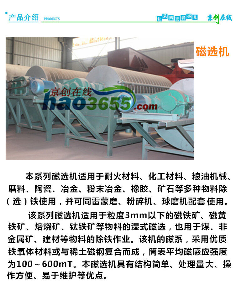 (5)、排出磁選機(jī)內(nèi)的磁性礦物。并周期地重復(fù)上述程序。磁選過程順序控制由順序控制器(見選礦設(shè)備順序控制器)實(shí)現(xiàn),根據(jù)工藝要求的控制順序預(yù)先編程,并存入順序控制器內(nèi)。