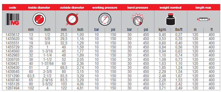可選擇項: 1. 不同的口徑2. 不同的工作壓力3. 內膠磨耗符合ISO 4649 50+/-5mm3 標準的Orinoco/2000