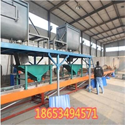 1、自動制板機;本機采用自動化多道輥壓、布網(wǎng)、鋪無紡布制板,一次成型,制板速度快,板材料光滑平整,規(guī)格任意調(diào)整,厚薄均勻,本機在砂漿狀態(tài)下,上下按順序布料布網(wǎng),同機實現(xiàn)復(fù)合制作與EPS聚苯板或XPS擠塑板復(fù)合一次性成型,并在復(fù)合板里面形成砂漿網(wǎng)狀立體聯(lián)接結(jié)構(gòu)。由于采用的技術(shù)先進,工藝獨特,不僅是生產(chǎn)效率成倍提高,制板成本大幅降低,而且極大的提高了保溫板的綜合質(zhì)量,機械強度和面層的粘結(jié)牢度,從根本上克服了傳統(tǒng)聚苯板和擠塑板現(xiàn)場施工造成的重復(fù)勞動復(fù)雜工序、及粘結(jié)不牢固、施工成本高等缺點。