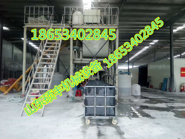 水泥基勻質板設備產品先將減水劑加入水(水溫40℃左右)中,攪拌均勻約20秒,再加粉煤灰、水泥攪拌1分鐘,加樹脂膠攪拌一分鐘,加纖維、憎水粉、固化劑攪拌30秒(根據(jù)固化速度調整時間),入加引氣劑攪拌20秒后充入聚苯顆粒(氣泵打入泥漿底部)攪拌5-10秒鐘后(泡沫顆粒均勻) 裹漿)將料漿倒入模子中刮平。