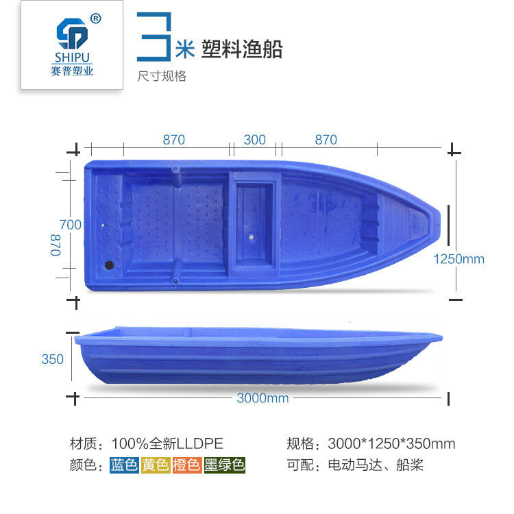 重慶賽普塑料捕魚船采用進(jìn)口韓國(guó)LLDPE材質(zhì),采用國(guó)外先進(jìn)的滾塑工藝整體加工制成。一次成型,無(wú)縫焊接。,成本低,穩(wěn)定性強(qiáng),抗撞擊,耐老化,無(wú)需維修。效果遠(yuǎn)超玻璃鋼漁船。使用年限長(zhǎng)達(dá)30年以上,是新一代的漁船。欲購(gòu)從速!13650528299(微信同號(hào))