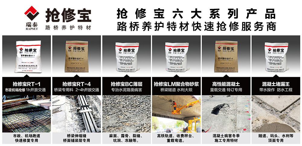 常規(guī)的混凝土快速修補(bǔ)劑,是由無機(jī)與有機(jī)高分子材料組成的一種快速修補(bǔ)材料,具有快硬、早強(qiáng)、抗?jié)B、抗裂、耐磨、耐久等特點(diǎn),較之普通混凝土,混凝土快速修補(bǔ)劑修補(bǔ)的路面粘結(jié)更牢固,修補(bǔ)過后的水泥路面沒有出現(xiàn)破損、裂縫、脫皮等剝離現(xiàn)象,抗壓強(qiáng)度和抗折強(qiáng)度更高,是混凝土路面病害修復(fù)材料的上等材料。與常規(guī)混凝土快速修補(bǔ)劑不同的是,西安瑞泰公司生產(chǎn)的水泥混凝土路面快速修補(bǔ)料搶修寶自主研發(fā)了一種獨(dú)特的修補(bǔ)產(chǎn)品和技術(shù),使得混凝土快速修補(bǔ)具有高柔性、高抗拉性,施工后2-4小時(shí)就可通車。因而短時(shí)間受到大量認(rèn)可,在全國各地道路搶修實(shí)施中廣泛發(fā)揮重要作用。廣泛應(yīng)用于高速公路、機(jī)場(chǎng)跑道、國道、省道、縣鄉(xiāng)公路、橋隧、加油站、工廠、小區(qū)、停車場(chǎng)、廠房、水壩、水電站等水泥路面病害問題的快速治理。