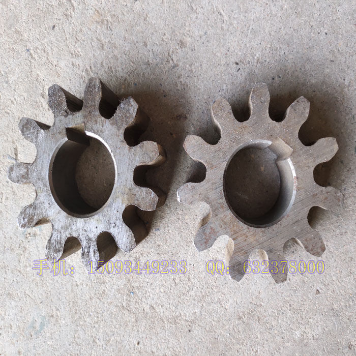 小型齒圈傳動攪拌機(jī)10齒11齒齒輪 圓罐滾筒攪拌機(jī)齒輪。10齒齒輪內(nèi)孔37mm,11齒齒輪內(nèi)孔41mm。滾筒攪拌機(jī),攪拌機(jī)的一種,是自落式雙錐反轉(zhuǎn)出料,攪拌筒由齒圈傳動,工作時正轉(zhuǎn)攪拌,反轉(zhuǎn)出料,可攪拌塑性和半干硬性混凝土,適用于一般建筑工地,道路,橋梁工程及各種混凝土構(gòu)件廠.手機(jī):15093449233 QQ:632378000