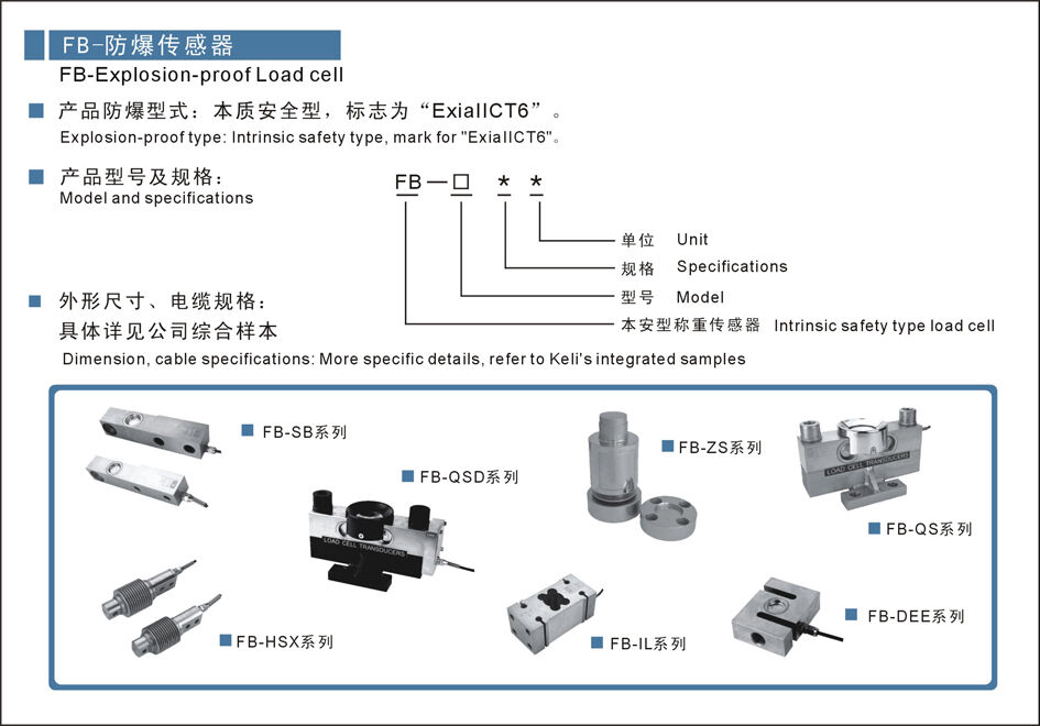 型號:FB-HSX防爆型稱重傳感器 柯力傳感器